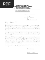 Berikut ini contoh surat penawaran barang yang diterbitkan oleh perusahaan dengan tujuan menjain kerjasama yang saling menguntungkan. Surat penawaran merupakan suatu surat yang ditujukan kepada suatu instansi yang bertujuan untuk menawarkan sesuatu. Contoh surat penawaran merupakan salah satu dari surat resmi yang sangat penting bagi seorang pengusaha, pedagang, jasa dan barang. Keberhasilan suatu penawaran tentunya dilandasi oleh surat penawaran tersebut. Documents similar to surat permintaan penawaran harga barang.